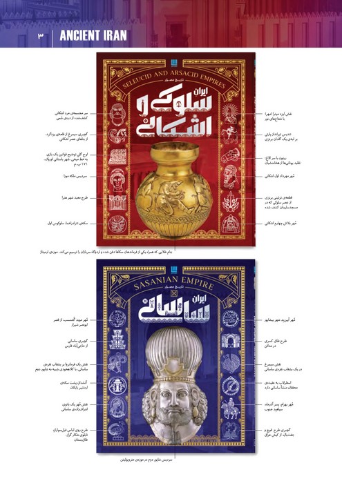 (تاریخ ساسانیان،اشکانیان،هخامنشیان ایران،تاریخ مصور ایران پیش از اسلام،اهتمام،یزدان صفایی و دیگران،تصویرگر:سلمان رئیس عبداللهی،4جلدی،باقاب،گلاسه)