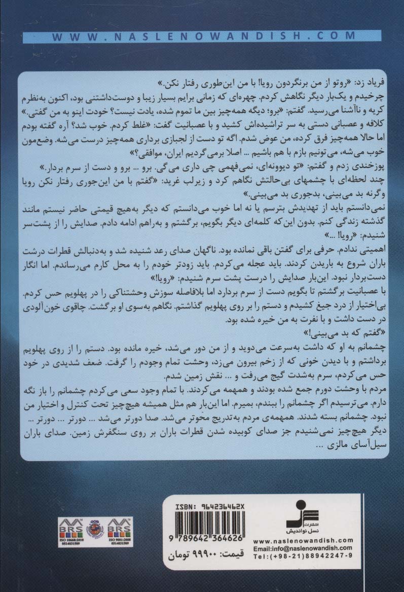 چشمانم به او که داشت به سرعت می دوید و از من دور می شد، خیره مانده بود. دستم را از روی پهلویم برداشتم و با دیدن خونی که از زخم بیرون می زد وحشت تمام وجودم را گرفته بود. ضعف شدیدی در خود حس کردم سرم به شدت گیج می رفت و… نقش زمین شدم…