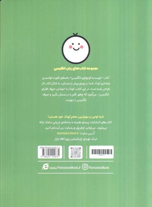 (راهنمای آموزشی الفبای انگلیسی برای پیش دبستانی ها،مصور واژه آموزی،مناسب بالای 5 سال،گروه سنی:الف،ب،تصویرگر:رقیه محبی)