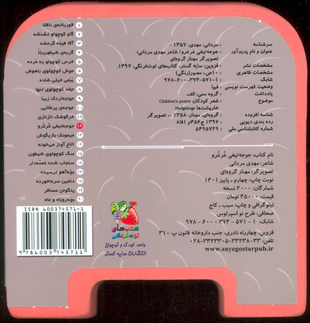 (شعر کودکان،خارپشت ها،گروه سنی:الف(3تا6سال)،تصویرگر:مهناز گروه ای،گلاسه)