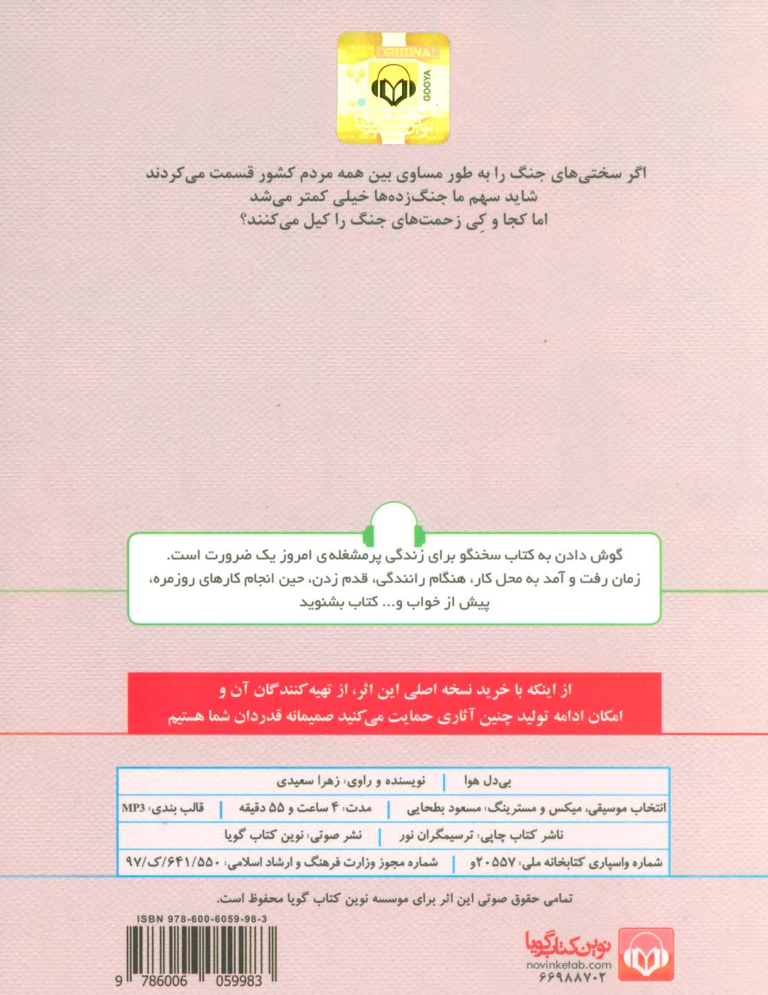 (با صدای:زهرا سعیدی،آهنگساز:زهرا سعیدی،مدت زمان:4ساعت و55دقیقه،حاوی 1حلقه سی دی،باقاب)