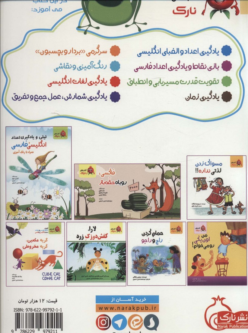(اعداد انگلیسی،زبان انگلیسی مصور،گروه سنی:الف،ب(3تا9سال)،تصویرگر:شکوفه حاجت پور،همراه با برچسب)