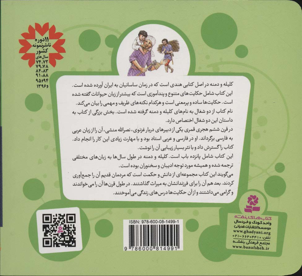 (داستان های حیوانات کلیله و دمنه،گروه سنی:ب،ج(7تا11سال)،تصویرگر:فرهاد جمشیدی،گلاسه)